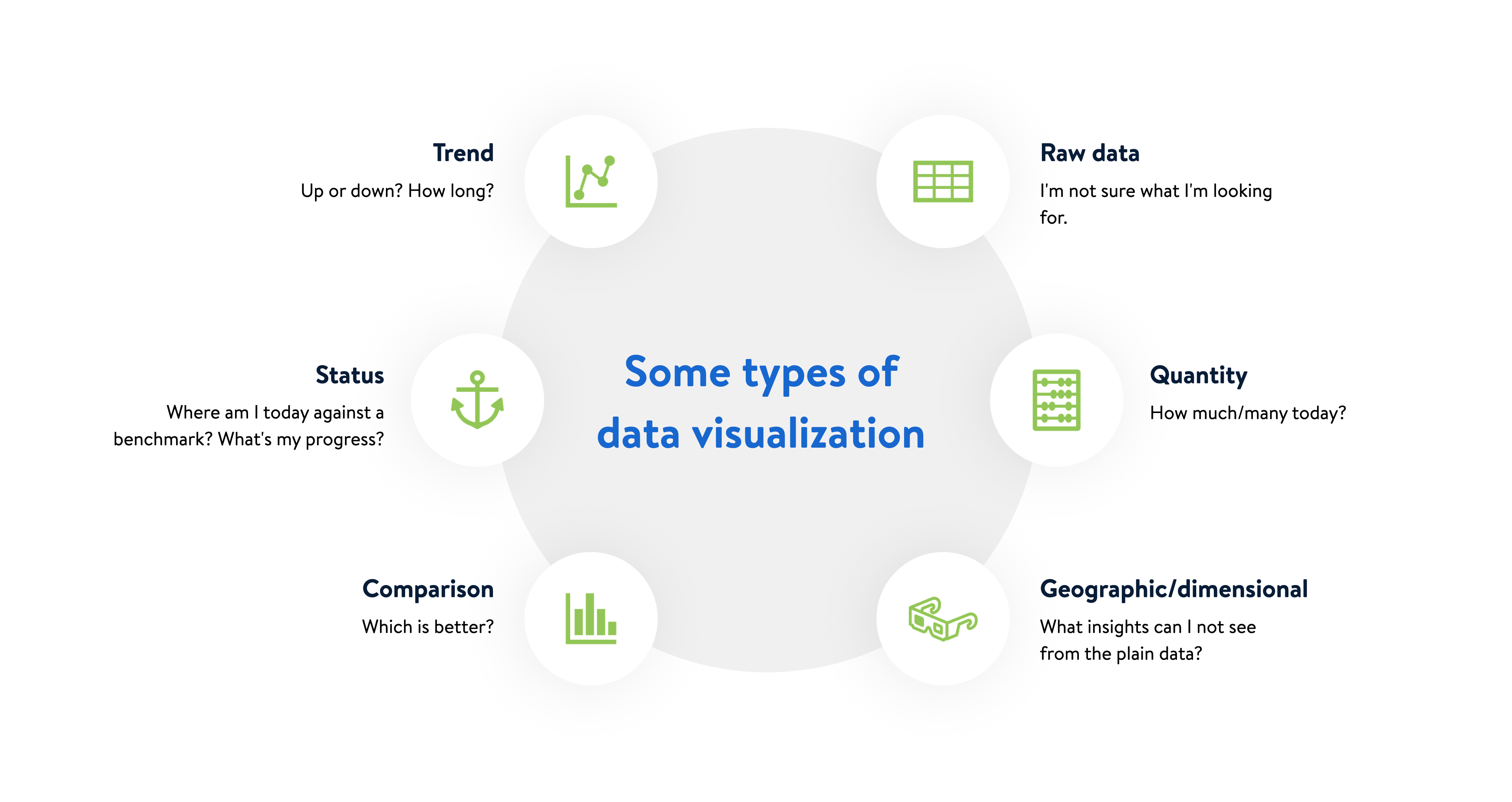 datatypes Typical dashboard data visualizations were grouped into six possible types. Post author By Eric Stoltz Post date September 9, 2024